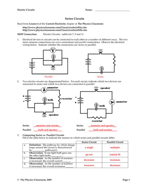 Online PDF PHYSICS CLASSROOM ANSWER KEY SERIES CIRCUITS Library Binding Gutenberg